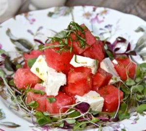 Watermelon Feta Salad with Lemon Basil Dressing
